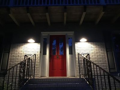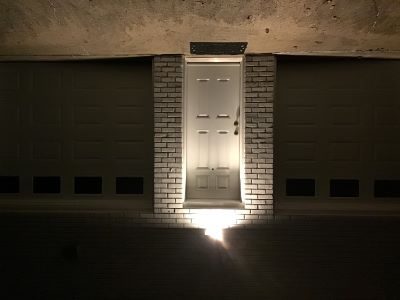 This fixture is mounted above a door used by our kids to enter the house when coming home late. With no “house” structure above it, any non shielded light would cause a lot of LP. I installed this fixture decades ago to replace an old box type lamp. As you can see, it has great light coverage of the entrance, with no up light or light trespass. Its sleek profile and color blends in great with the wall. Even better, it has a glass cover to prevent the bugs from entering the fixture. As you can tell I am really proud of this one and it has held up great. (A tip on bulbs for enclosed fixtures like this one, make sure you purchase a bulb that is rated to be used in an enclosed fixture. These are not hard to find on the shelves locally. The fixture rating is usually written either on the packaging or the bulb itself. Using a non-enclosed fixture rated bulb will shorten the LEDs life span due to heat build up. But, a bulb rated for an enclosed fixture is built to take the heat. The current fixture has lasted for 20+ years.)